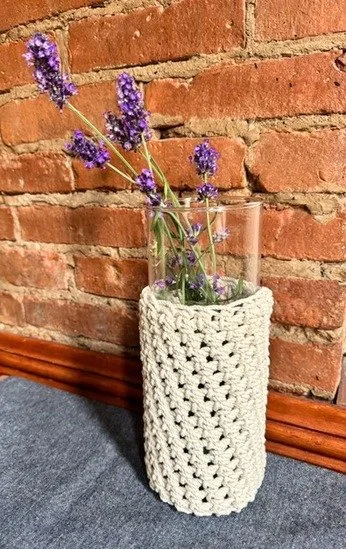 Our crocheted vases bring life and warmth to any floral design. Created with 3mm braided rope.